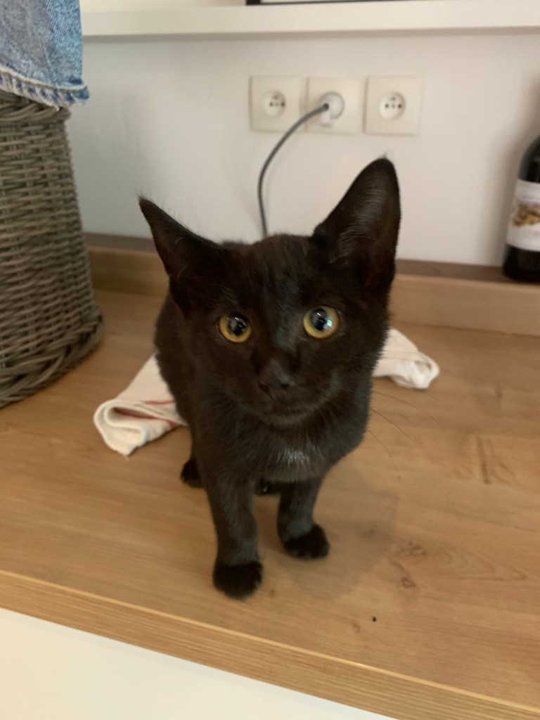 Our grandson was spending a week with us over the summer holidays, and according to the unwritten summer holiday rules (for things that HAVE TO BE DONE on holiday), we were playing Uno on the terrace late into the evening when suddenly, a plaintive mew was heard. Now, we get a lot of wildlife noises round here at night but not that many from pusscats as we are 2 kilometres from the village.