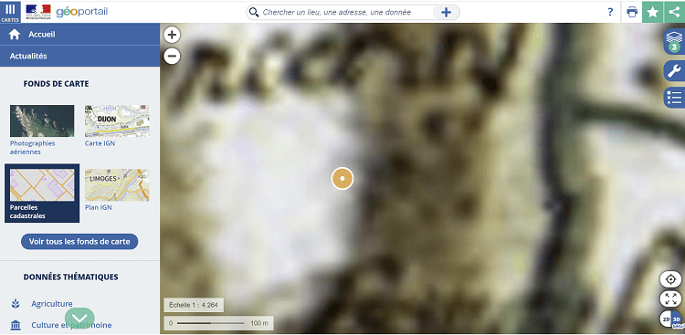 This lets you search on the address of your house and if you click on the Cartes menu in the top left hand corner and then on the button labelled Voir tous les fonds de cartes you will see a selection of maps, including satellite and aerial images from different years, cadastral (land registry) plans and the aforementioned carte Cassini.