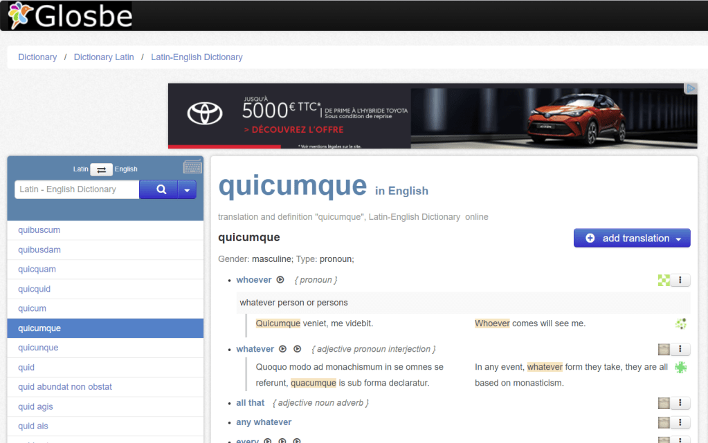 My first thought was “there must be some whizzy software or website out there that could help”, but lengthy searching only came up with Google Translate and I’m afraid that was totally useless for latin. Excellent sites that I would normally use, such as Deepl, Reverso and Linguee don’t even offer latin as an option.