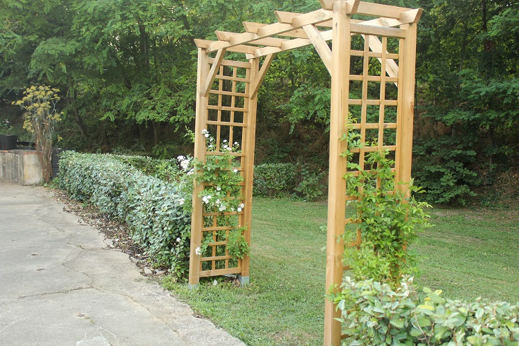 We found ourselves an inexpensive (129€) aluminium pergola kit from the local E Leclerc supermarket and went home to erect it, (then went back to the supermarket because they had forgotten to give us one of the boxes).