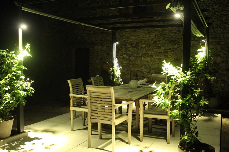 What I wanted to do was break up the space and provide an area where people could sit and have lunch in comfort, shaded from the midday sun and which would be lit at night for lazy dinners and spending un petit moment convivial with friends, where everyone would have something nice to look at no matter where they sat at the table.
